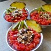 Öntsd pohárba, majd ha kedved tartja, díszítheted is. Én kókuszreszelékkel és friss kókusszal dekoráltam, továbbá eperrel és narancsszelettel.