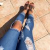 És íme a szűk, élénk kék farmer naci. Én nagyon szeretem, főleg azért is, mert magasabb a dereka. Egyébként 2016 tavaszától elkezdenek visszajönni a trapéz nadrágok. Jó ez, mire mindenki megszabadul tőlük, hát íme, ismét megjelennek. Érdekes tavaszunk lesz. 😀